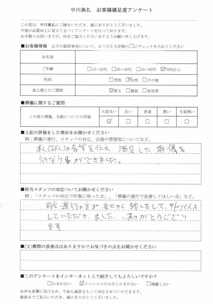 中川典礼では、ご遺族の想いに寄り添うことを何よりも大切にしています。