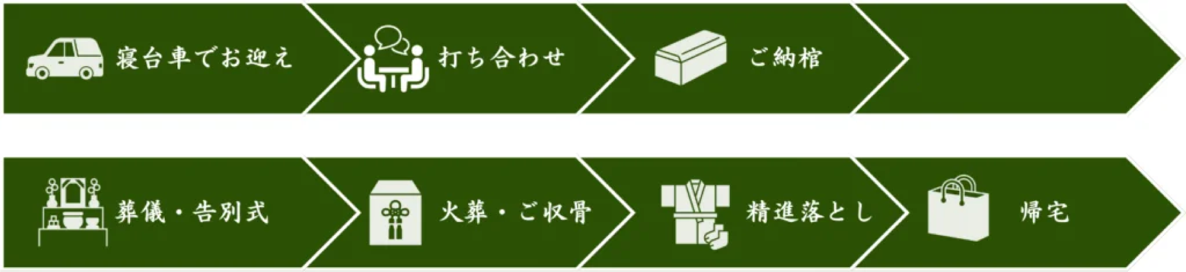 火葬式、一日葬、家族葬、一般葬、大型葬まで全てのプランに安心サポートいたします。